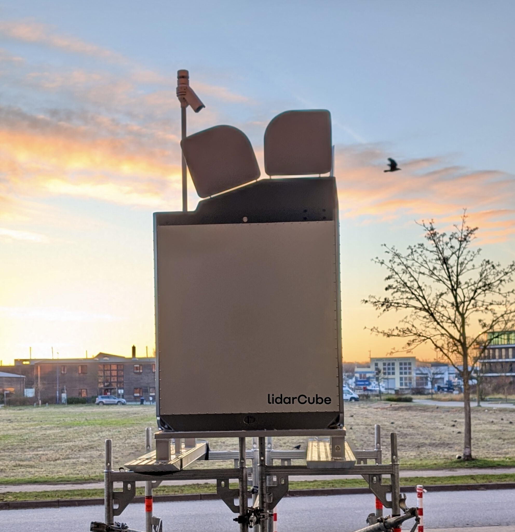 The LidarCUBE can be used day and night. Thanks to the access protection, unattended operation is also possible. The LidarCUBE works automatically after the previously defined operating and measurement conditions have been set. The product detects optional air traffic by means of commercially available active, passive and transponder systems and then includes them in the measurement regime (automatic shutdown).